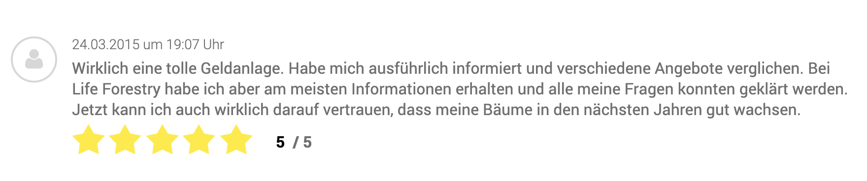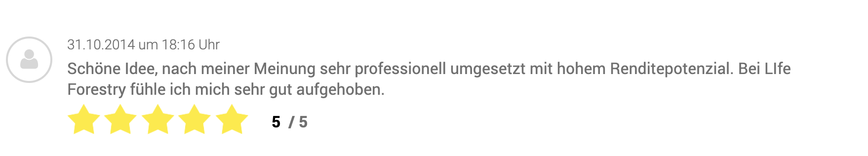 "Die weltgrösste Rating-Agentur D&B verleiht Life Forestry die Bestnote 1. Nur 2% aller Firmen in der Schweiz können diese Auszeichnung erhalten."